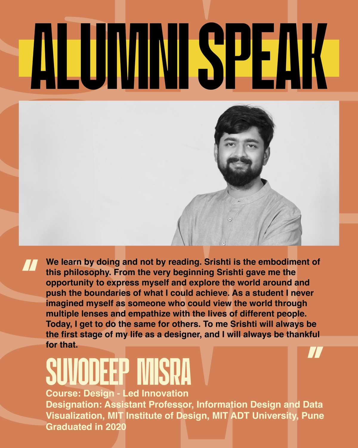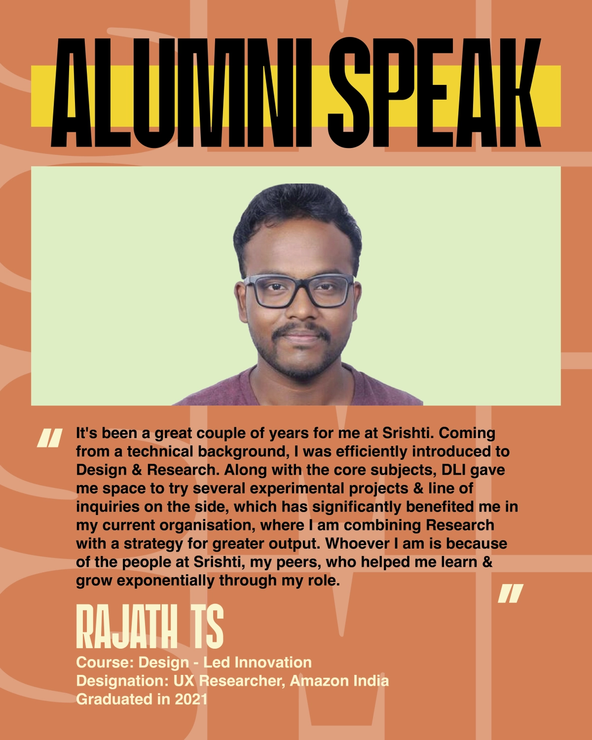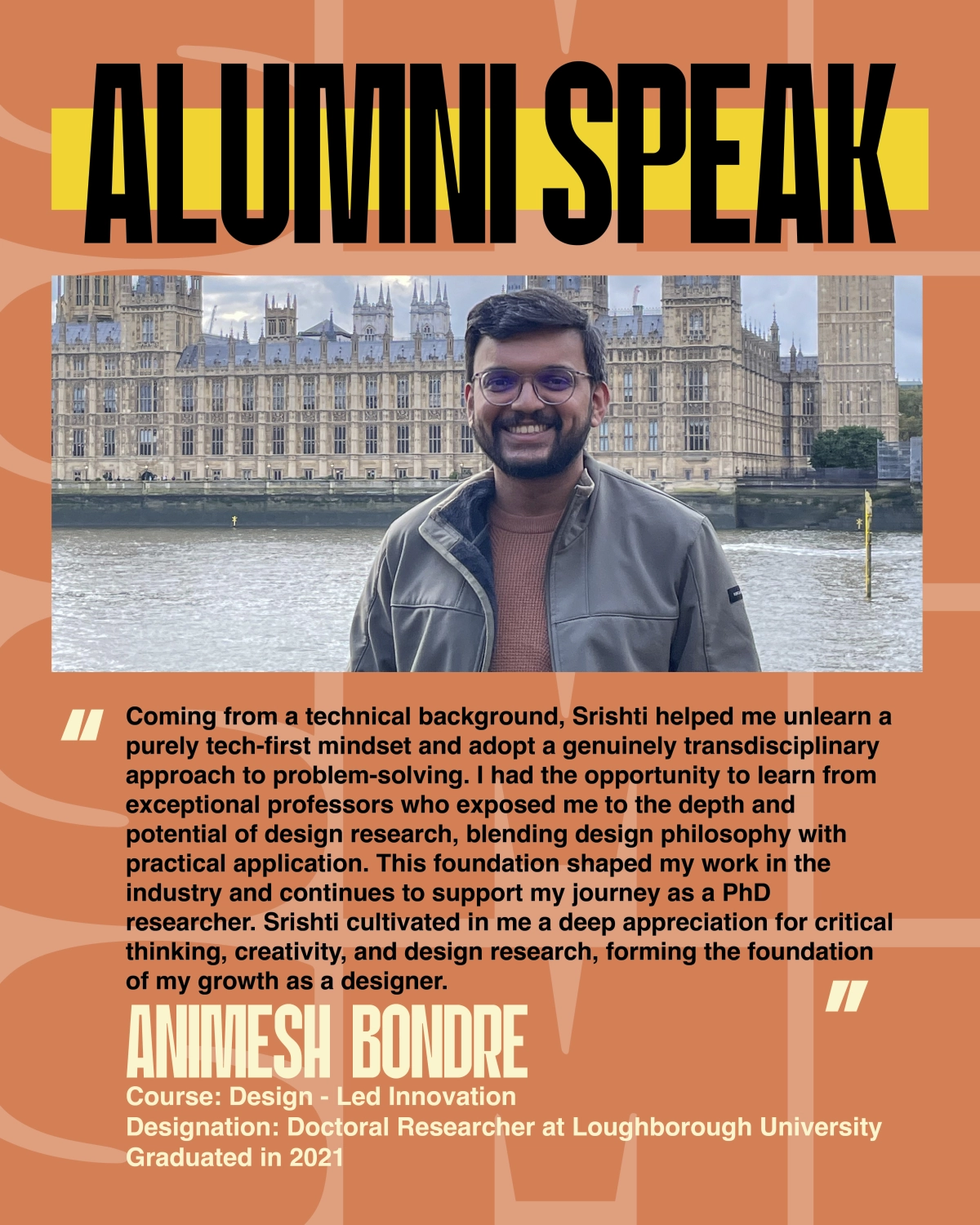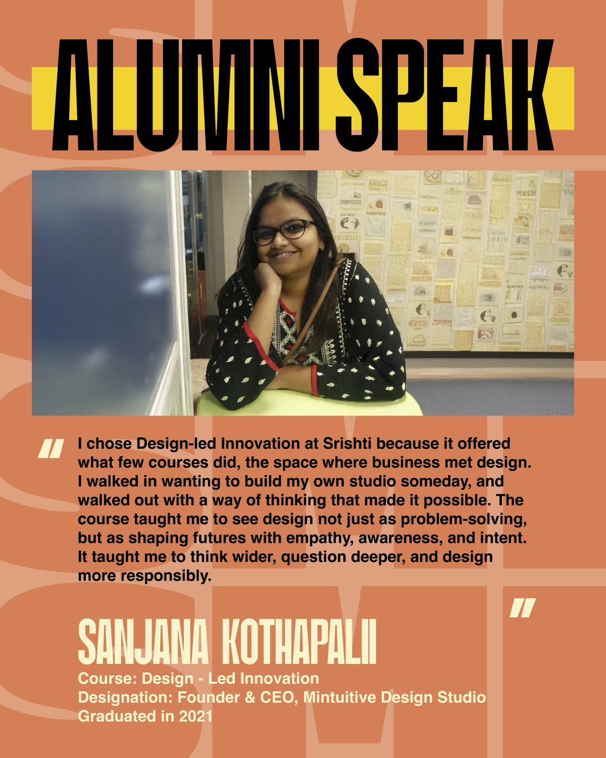 At Srishti Manipal Institute , Design-Led Innovation Program concentrates on innovative interventions in social and business spaces. The Program nurtures an individual to blend creativity with business strategy, focus on users and practice the craft of story telling . An individual should be able to collaborate across disciplines and solve complex problems . One should be able to bridge theory and practice and understand organisational dynamics .