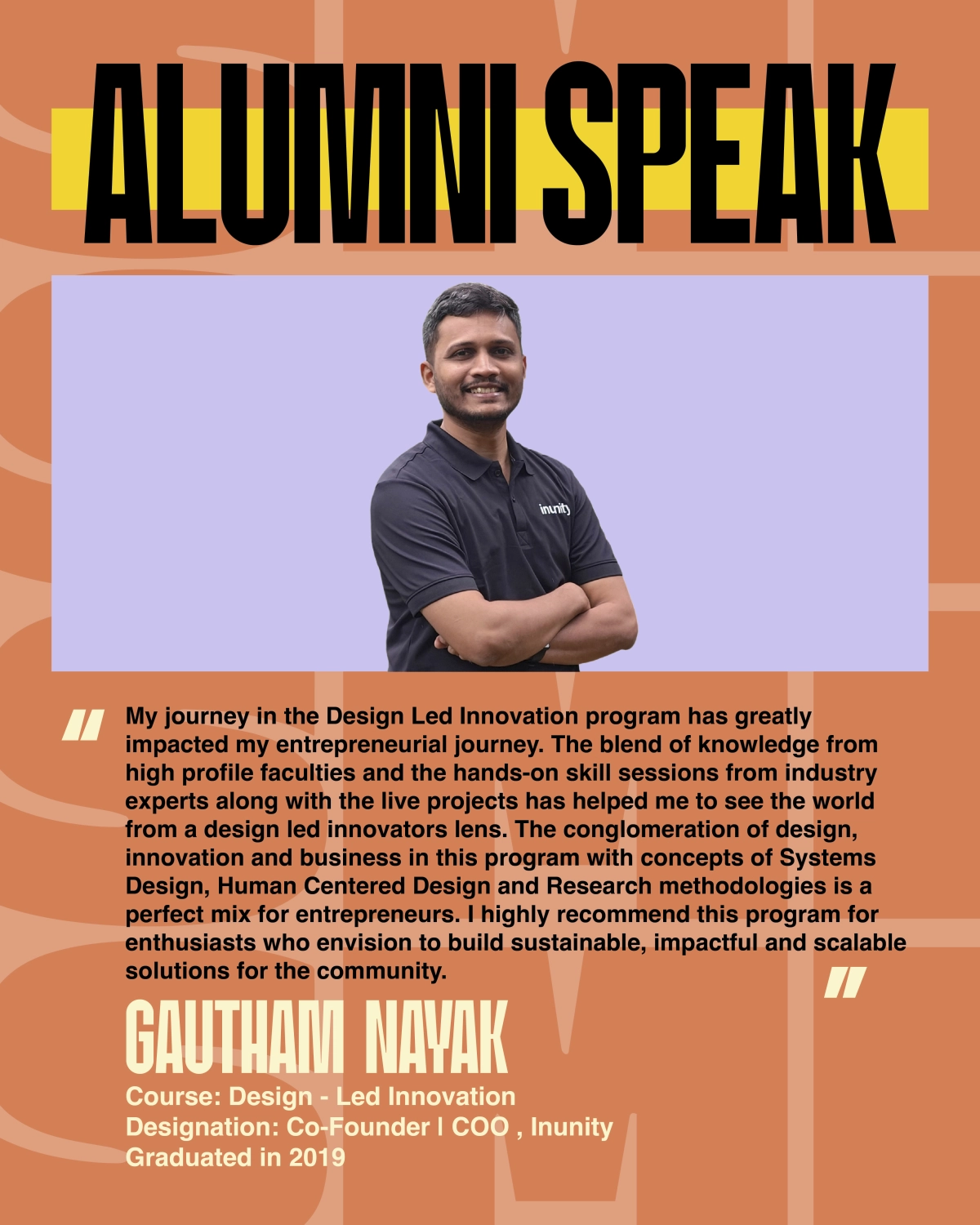 Design can drive innovation by making products, systems, and services more valuable for organisations and society alike, resulting in a sustainable advantage. The Postgraduate Program in Design Led Innovation aims to train innovators to apply their critical and creative thinking abilities to address a problem .