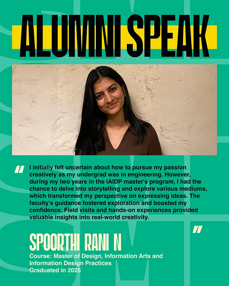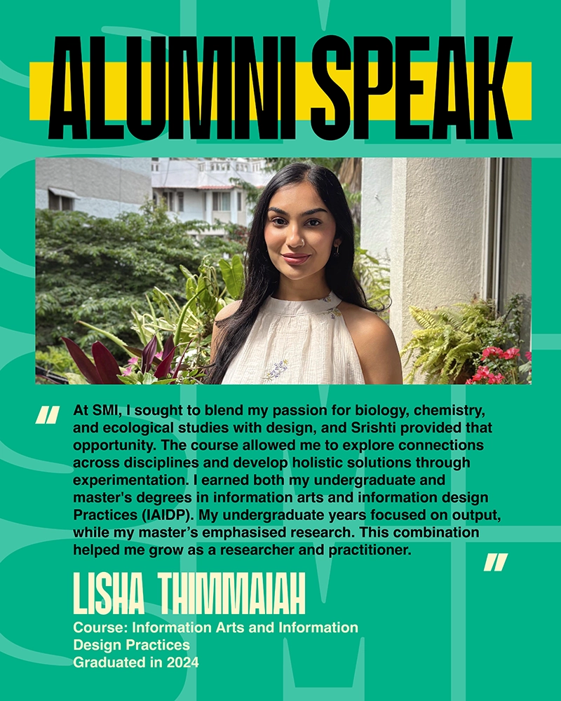 Information shapes how we live, connect, and make decisions. From social media to artificial intelligence, from ecological challenges to cultural change, our personal and collective lives are increasingly mediated by complex information systems. The two-year Postgraduate Program in Information Arts and Information Design Practices (IAIDP) at Srishti Manipal Institute equips you with core principles of information architecture and design to navigate emerging personal, societal, cultural, political, and technological perspectives. On one hand, with information arts, you will explore the role of art in the current information-driven age by breaking down disciplinary boundaries and initiating conversations on artistic practices. On the other hand, with information design, you will engage in the practice of presenting information effectively and meaningfully by combining principles of design and communication. As you train in the research-driven IAIDP course, you will acquire skills in storytelling, illustration, board games, systems design and data visualisation. You will be prepared for careers and leadership across diverse cultural spaces, communities, environmental organisations, and industries. These include, but are not restricted to, design and media technology, the gaming industry, the advertising sector, publishing, education, and advanced research organisations.